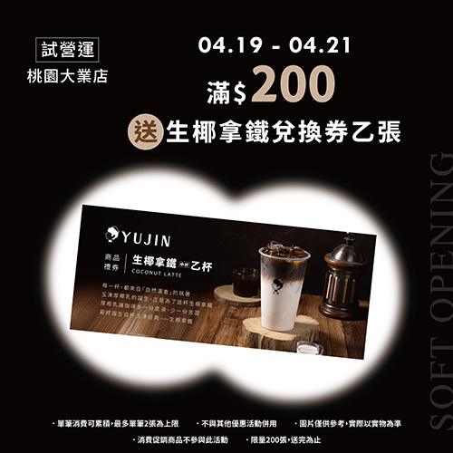 消費滿 $200 送生椰拿鐵兌換券乙張