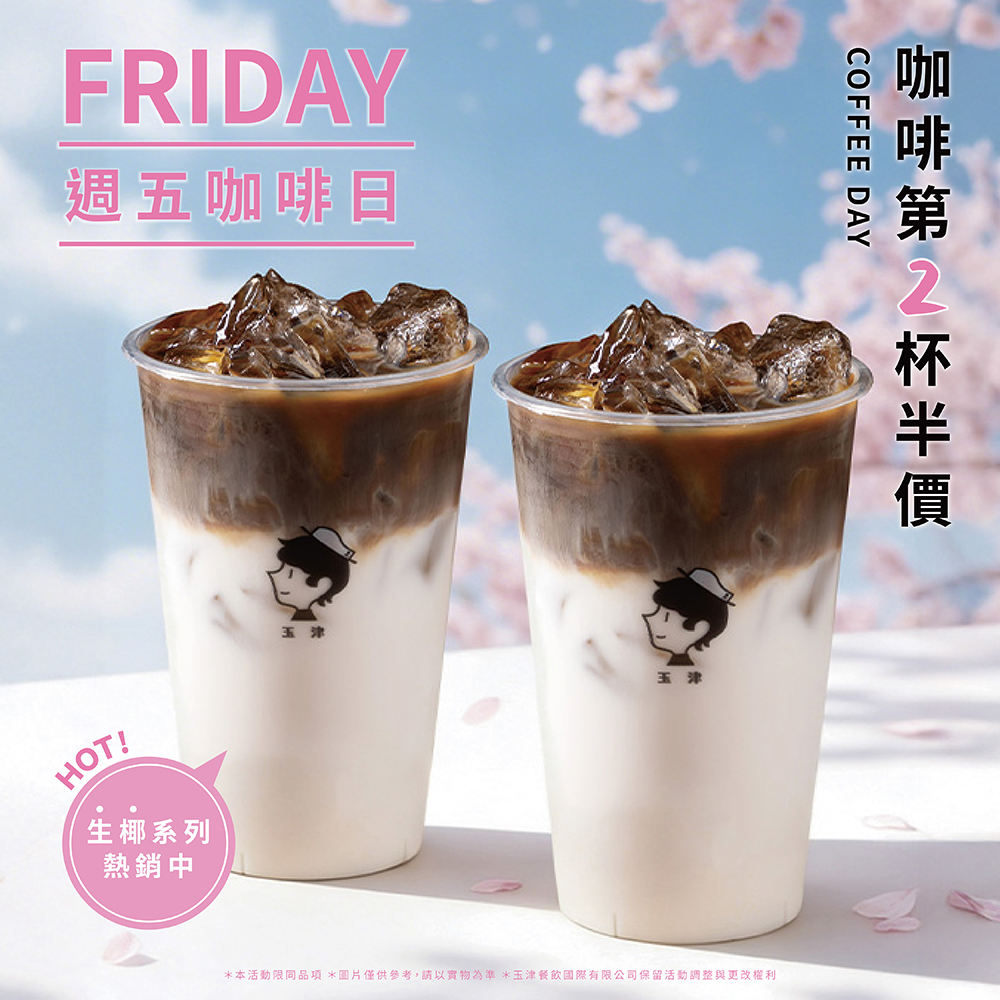 週五限定.咖啡第二杯半價 櫻花開了 週五也快到了 那就用兩杯咖啡 開啟週五好心情吧 .ᐟ 玉津嚴選義式咖啡豆 第一口的微苦 慢慢轉成黑巧克力般的甜香 像春天一樣 輕輕地,在心裡盛開 這個週五 快和喜歡的人們一起 喝一杯吧 ( ˶ˊᵕˋ)੭♡ #玉津咖啡 #週五咖啡日 #春天 #會員限定